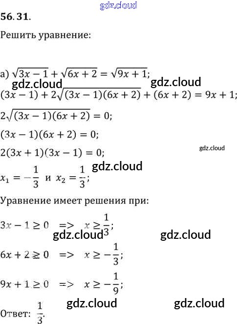 Ответ на задание 56. 31 Задачник Алгебра за 10, 11 (десятый, одиннадцатый) класс Мордкович, Денищева, Корешкова, Мишустина, Семёнов, Тульчинская Базовый уровень 2015 Часть 2