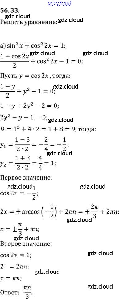 Ответ на задание 56. 33 Задачник Алгебра за 10, 11 (десятый, одиннадцатый) класс Мордкович, Денищева, Корешкова, Мишустина, Семёнов, Тульчинская Базовый уровень 2015 Часть 2