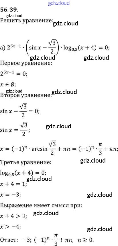 Ответ на задание 56. 39 Задачник Алгебра за 10, 11 (десятый, одиннадцатый) класс Мордкович, Денищева, Корешкова, Мишустина, Семёнов, Тульчинская Базовый уровень 2015 Часть 2
