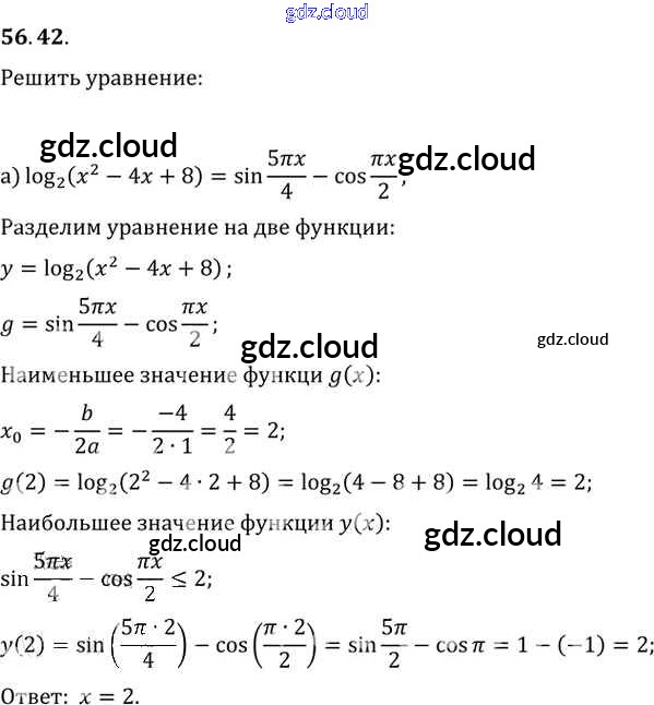 Ответ на задание 56. 42 Задачник Алгебра за 10, 11 (десятый, одиннадцатый) класс Мордкович, Денищева, Корешкова, Мишустина, Семёнов, Тульчинская Базовый уровень 2015 Часть 2