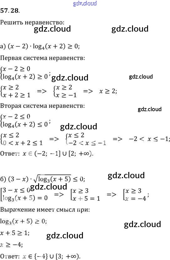 §57. Решение неравенств с одной переменной Глава 10 по Алгебре 10, 11 класс Задачник Мордкович Базовый уровень Часть 2 Мнемозина
