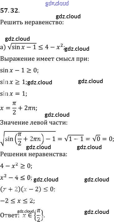 Ответ на задание 57. 32 Задачник Алгебра за 10, 11 (десятый, одиннадцатый) класс Мордкович, Денищева, Корешкова, Мишустина, Семёнов, Тульчинская Базовый уровень 2015 Часть 2