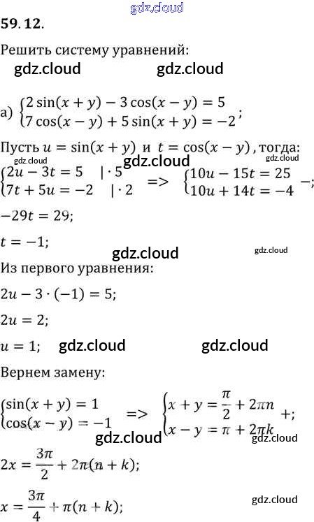 §59. Системы уравнений Глава 10 по Алгебре 10, 11 класс Задачник Мордкович Базовый уровень Часть 2 Мнемозина