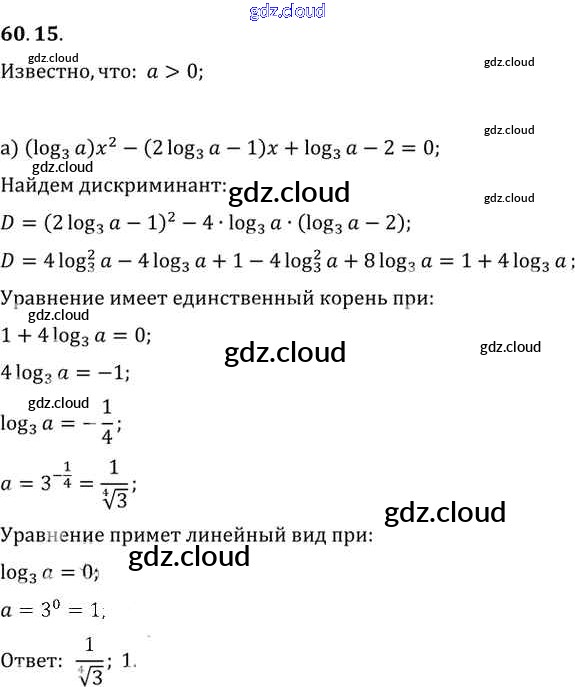 Ответ на задание 60. 15 Задачник Алгебра за 10, 11 (десятый, одиннадцатый) класс Мордкович, Денищева, Корешкова, Мишустина, Семёнов, Тульчинская Базовый уровень 2015 Часть 2