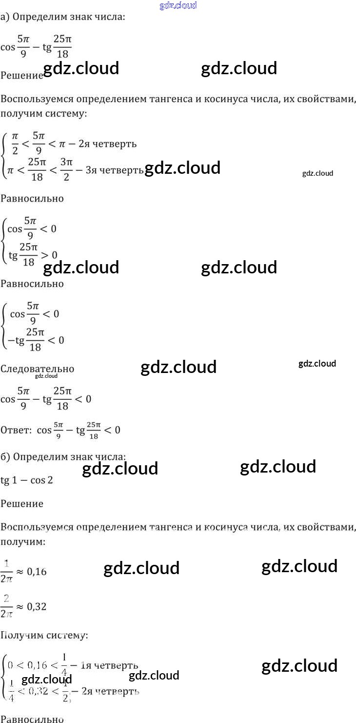 §6. Синус и косинус. Тангенс и катангенс Глава 2 по Алгебре 10, 11 класс Задачник Мордкович Базовый уровень Часть 2 Мнемозина