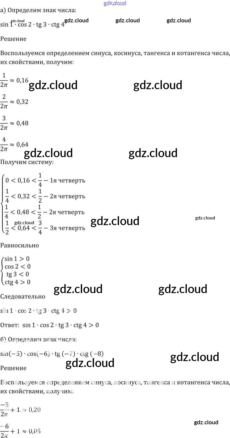 §6. Синус и косинус. Тангенс и катангенс Глава 2 по Алгебре 10, 11 класс Задачник Мордкович Базовый уровень Часть 2 Мнемозина