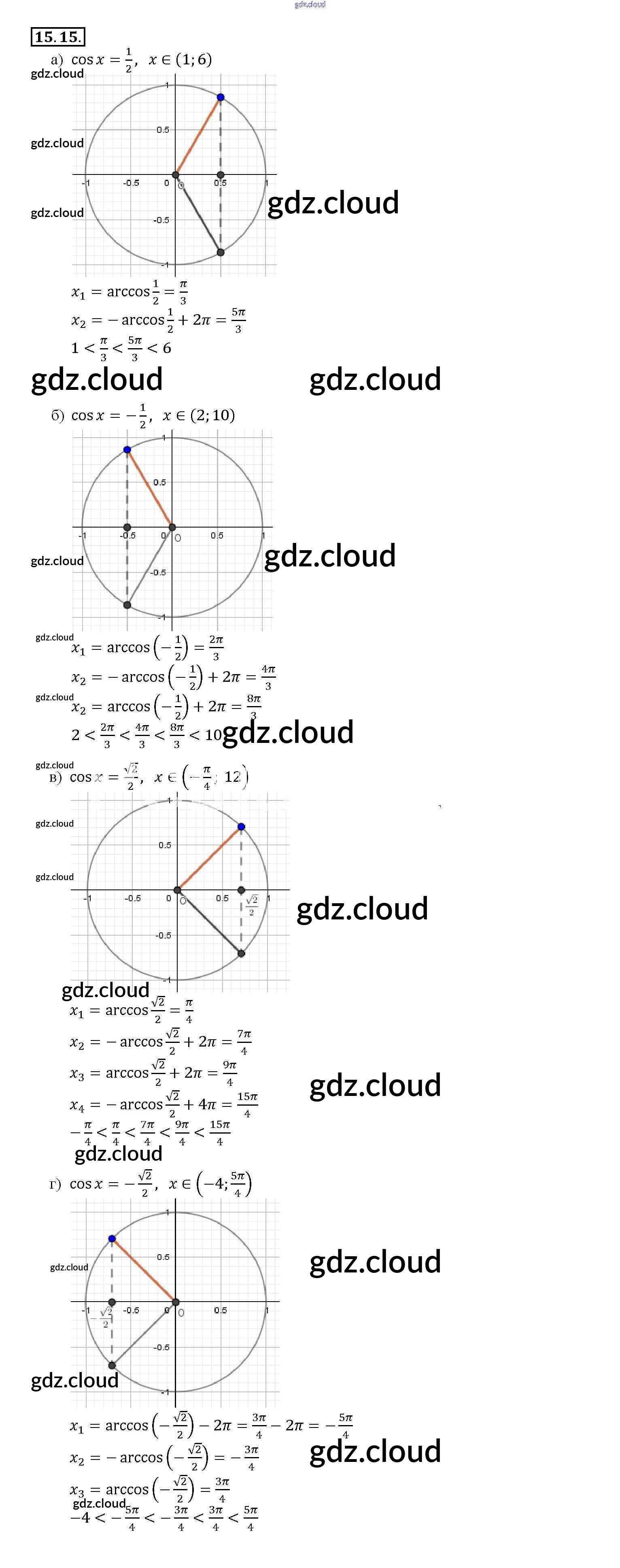 §15. Арккосинус. Решение уравнения cos t = a Глава 3 по Алгебре 10, 11 класс Задачник Мордкович Базовый уровень Часть 2 Мнемозина