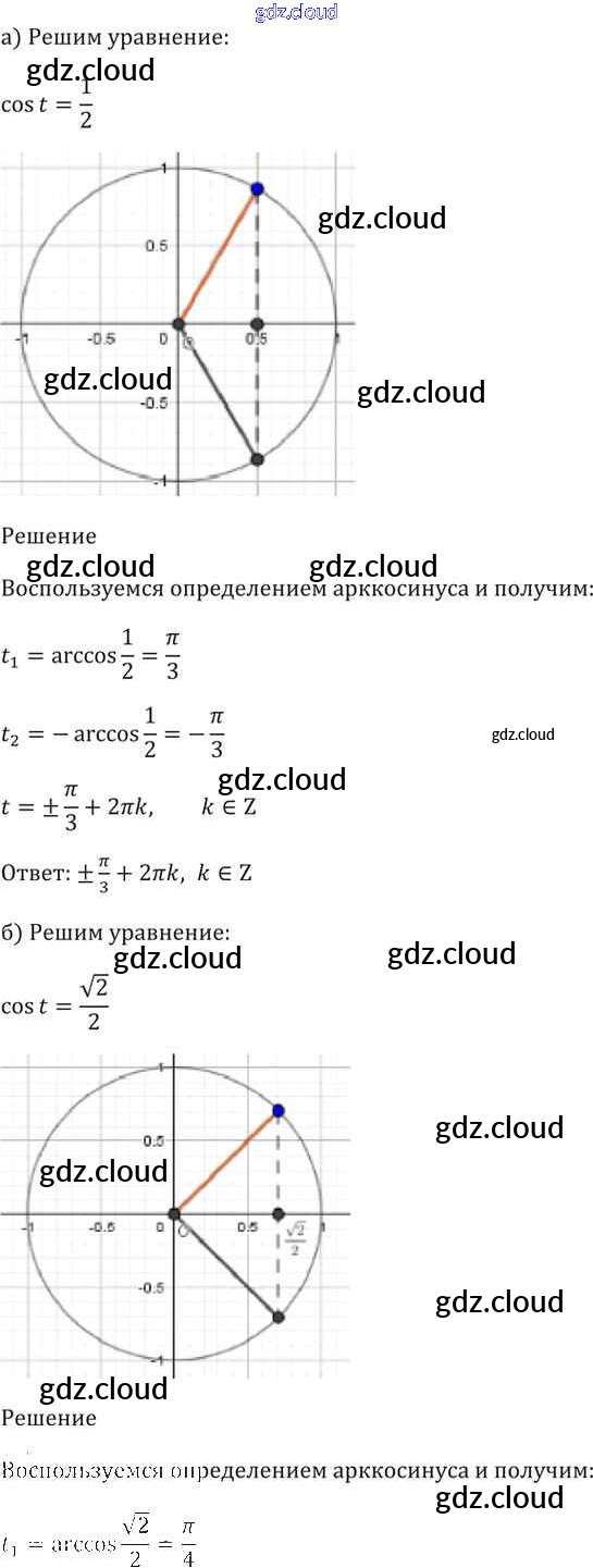 §15. Арккосинус. Решение уравнения cos t = a Глава 3 по Алгебре 10, 11 класс Задачник Мордкович Базовый уровень Часть 2 Мнемозина
