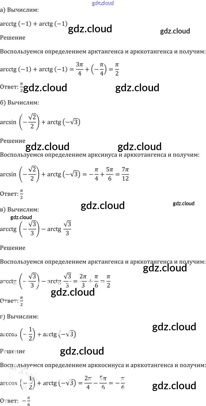 §17. Арктангенс и арккотангенс Глава 3 по Алгебре 10, 11 класс Задачник Мордкович Базовый уровень Часть 2 Мнемозина