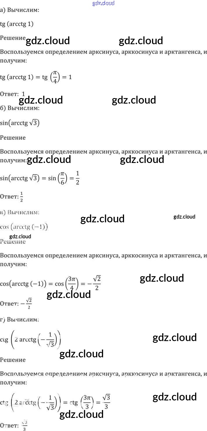 §17. Арктангенс и арккотангенс Глава 3 по Алгебре 10, 11 класс Задачник Мордкович Базовый уровень Часть 2 Мнемозина
