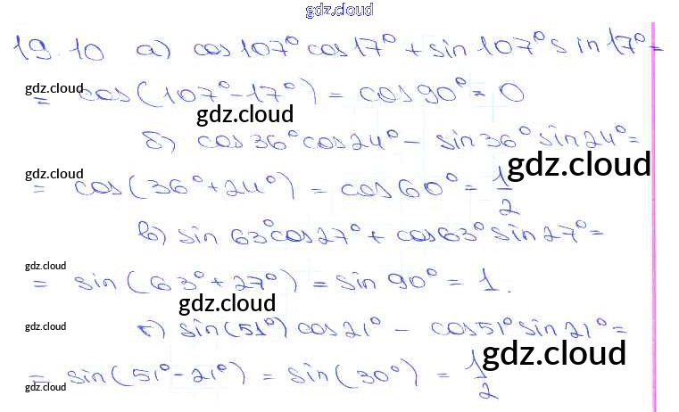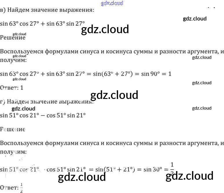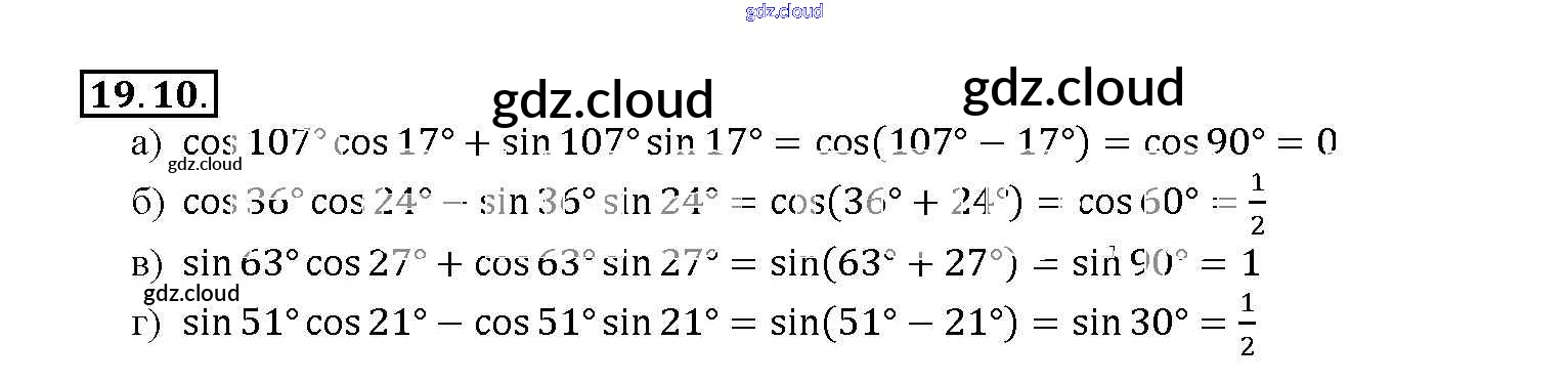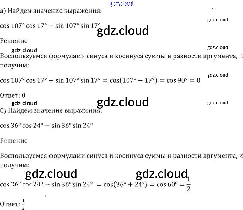§19. Синус и косинус суммы и разности аргументов Глава 4 по Алгебре 10, 11 класс Задачник Мордкович Базовый уровень Часть 2 Мнемозина