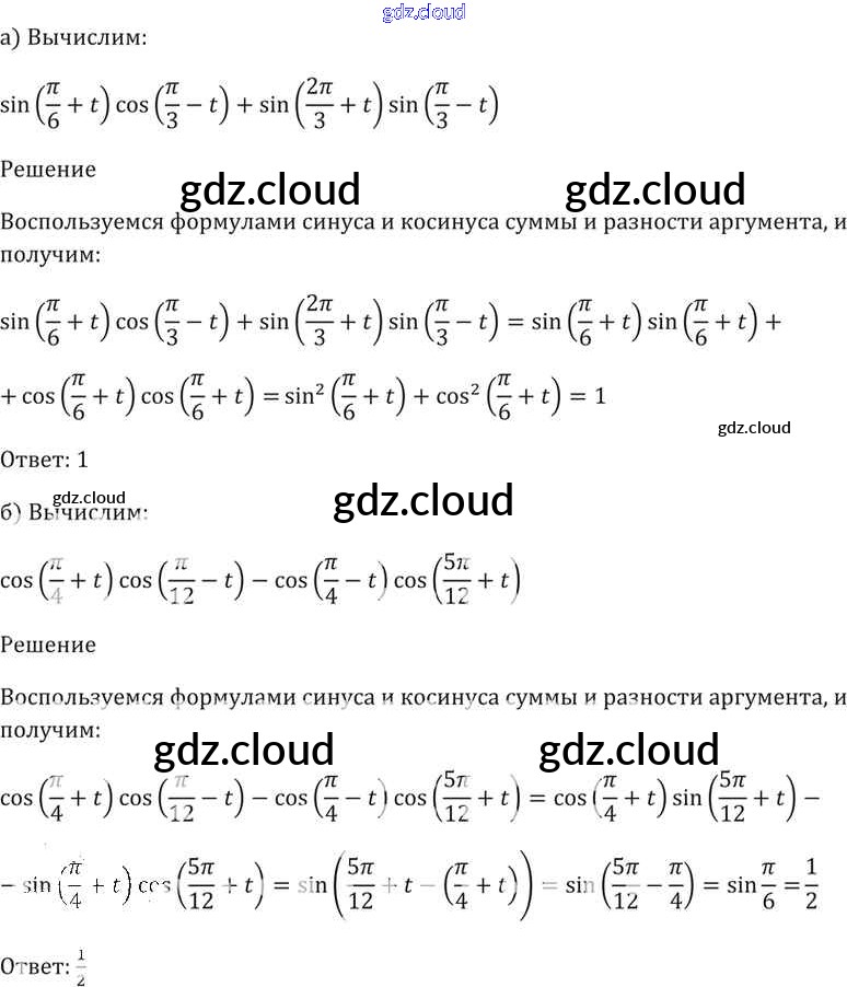 §19. Синус и косинус суммы и разности аргументов Глава 4 по Алгебре 10, 11 класс Задачник Мордкович Базовый уровень Часть 2 Мнемозина