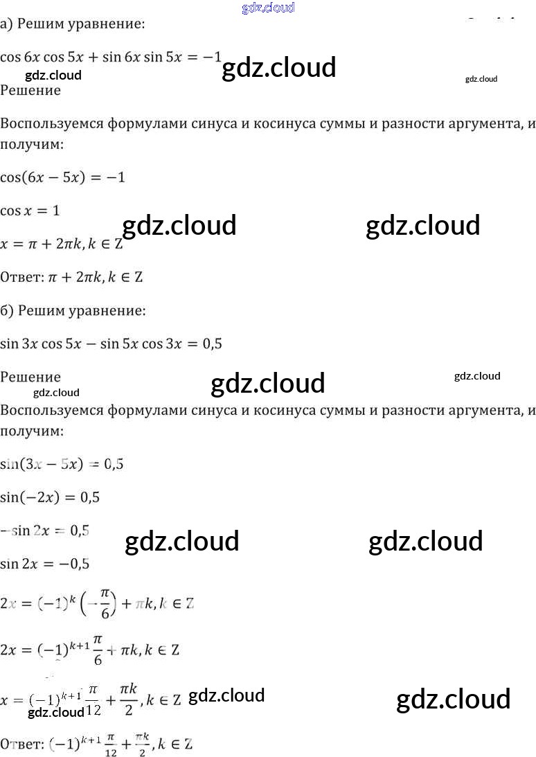 §19. Синус и косинус суммы и разности аргументов Глава 4 по Алгебре 10, 11 класс Задачник Мордкович Базовый уровень Часть 2 Мнемозина