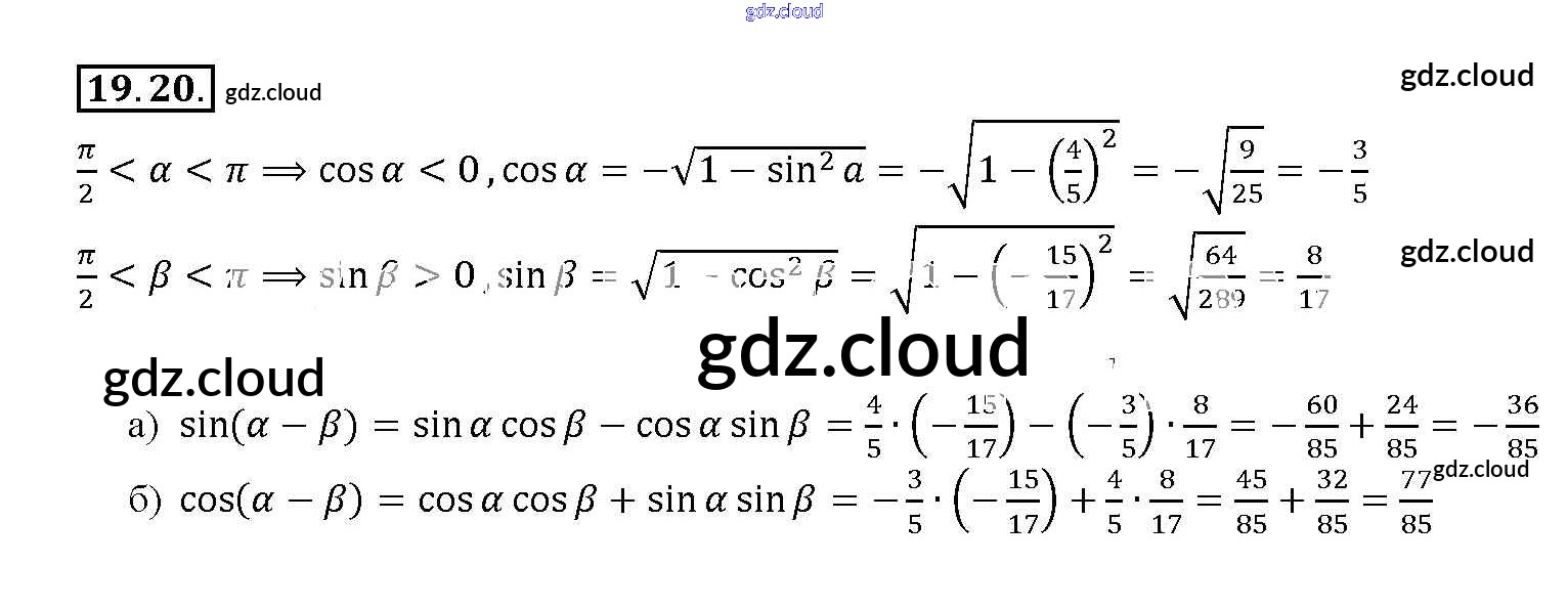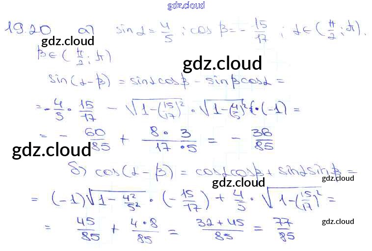 §19. Синус и косинус суммы и разности аргументов Глава 4 по Алгебре 10, 11 класс Задачник Мордкович Базовый уровень Часть 2 Мнемозина