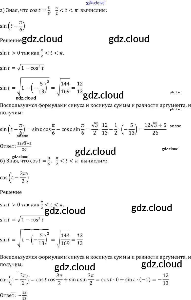 §19. Синус и косинус суммы и разности аргументов Глава 4 по Алгебре 10, 11 класс Задачник Мордкович Базовый уровень Часть 2 Мнемозина