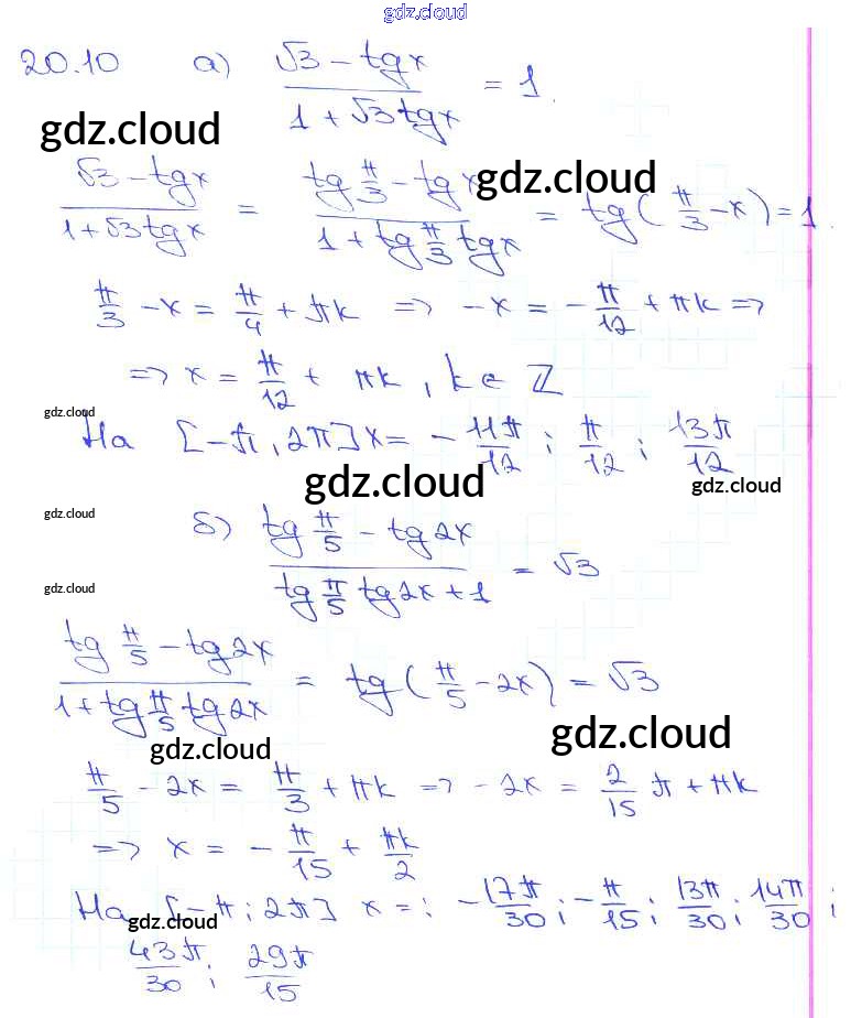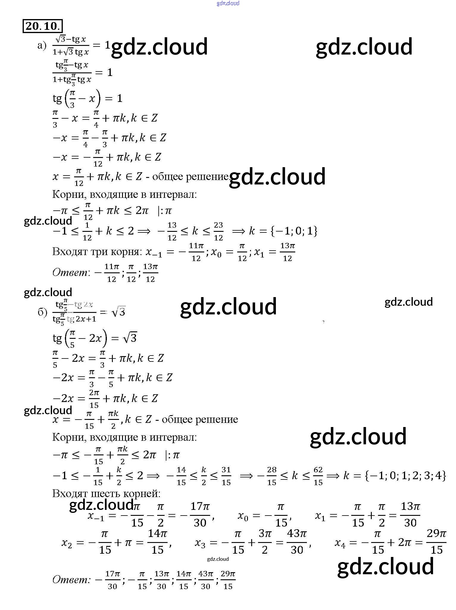 §20. Тангенс суммы и разности аргументов Глава 4 по Алгебре 10, 11 класс Задачник Мордкович Базовый уровень Часть 2 Мнемозина