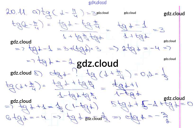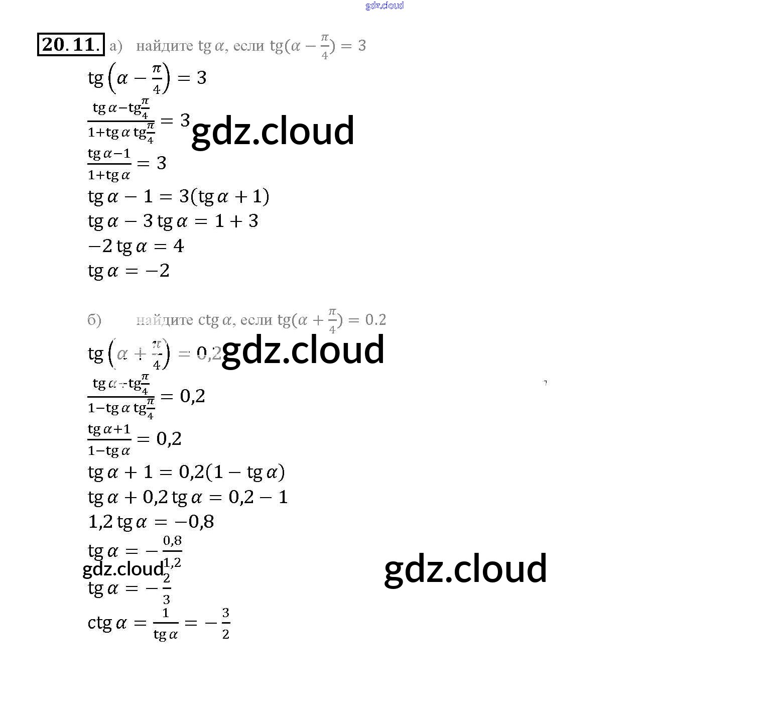 §20. Тангенс суммы и разности аргументов Глава 4 по Алгебре 10, 11 класс Задачник Мордкович Базовый уровень Часть 2 Мнемозина
