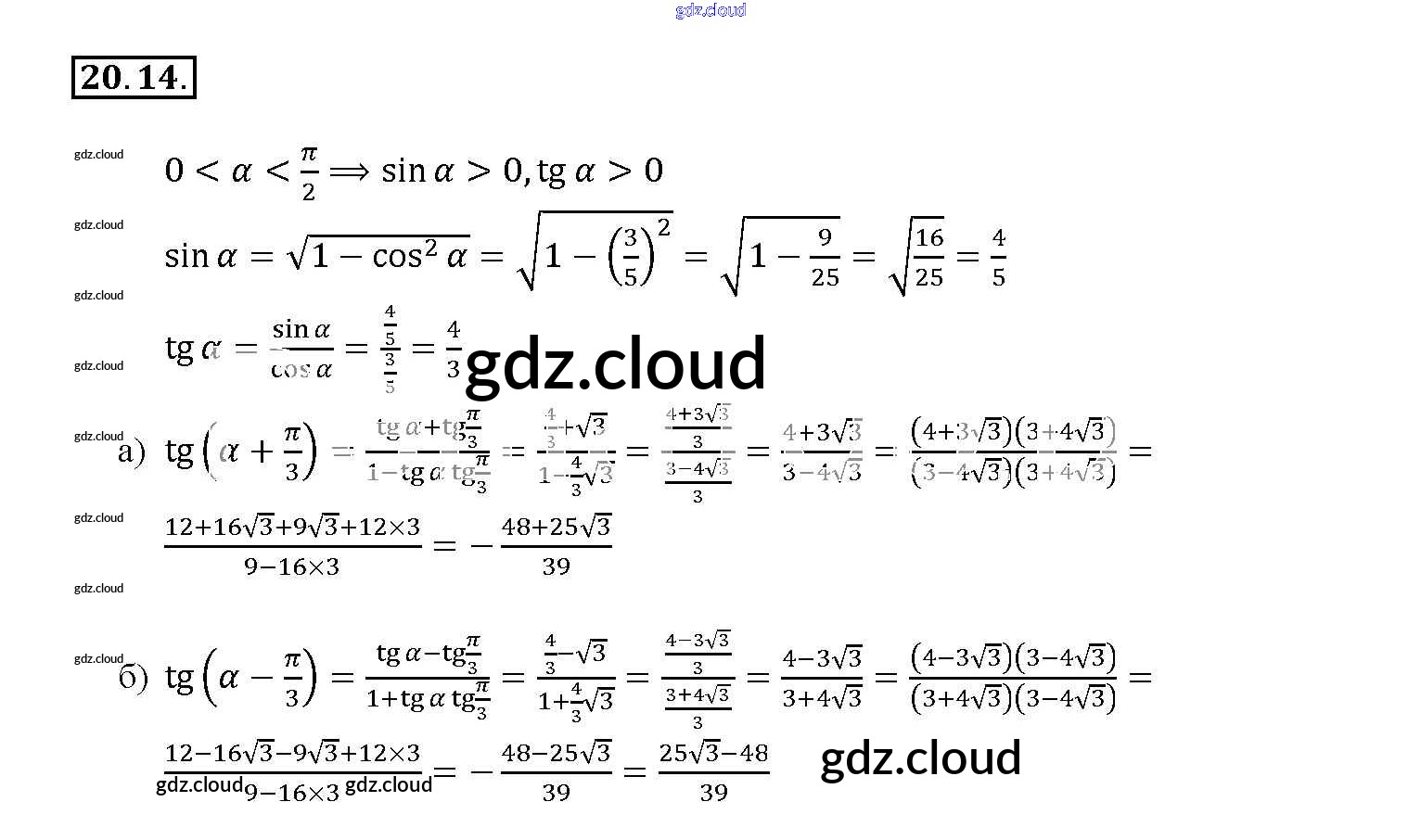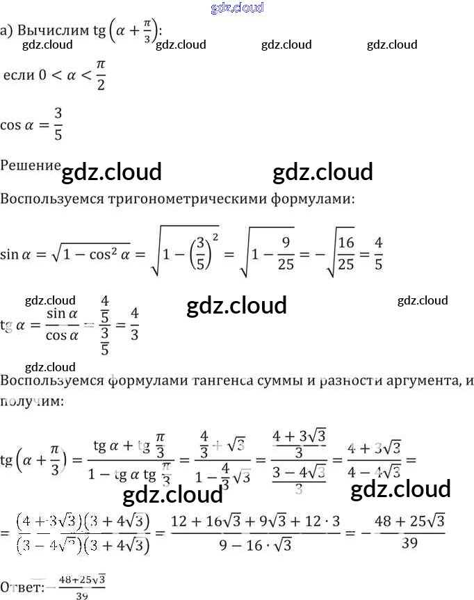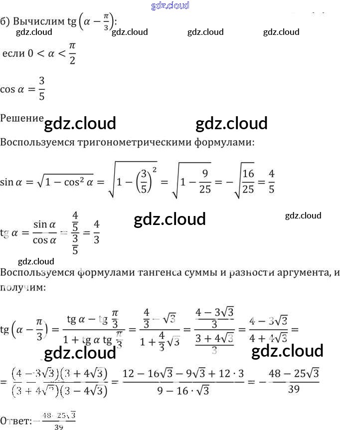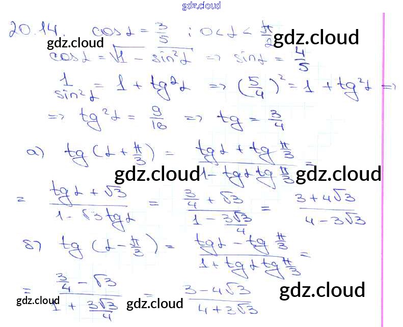 §20. Тангенс суммы и разности аргументов Глава 4 по Алгебре 10, 11 класс Задачник Мордкович Базовый уровень Часть 2 Мнемозина