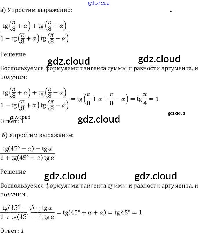 §20. Тангенс суммы и разности аргументов Глава 4 по Алгебре 10, 11 класс Задачник Мордкович Базовый уровень Часть 2 Мнемозина