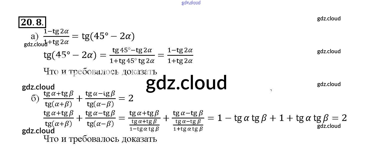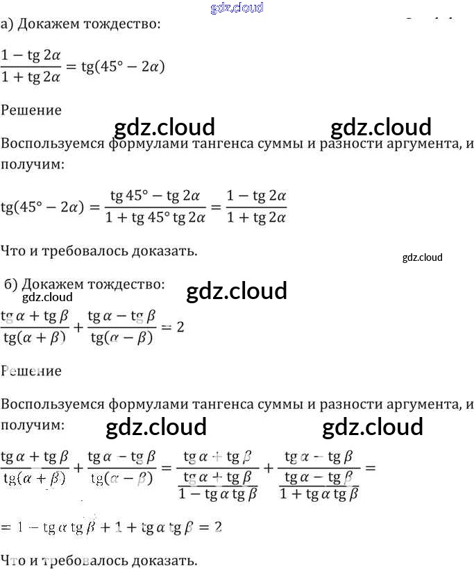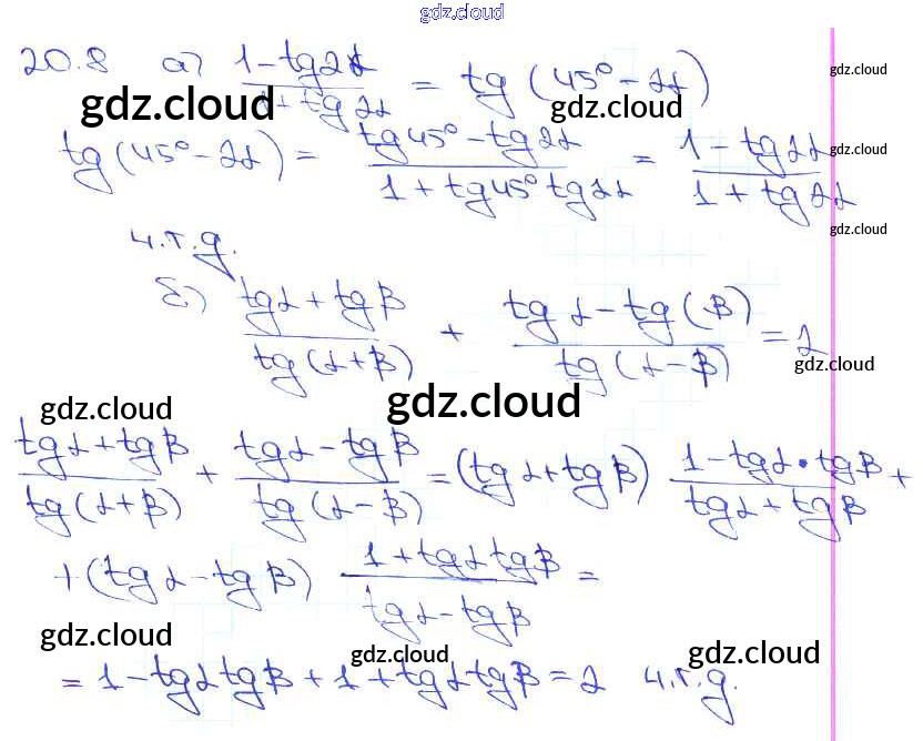 §20. Тангенс суммы и разности аргументов Глава 4 по Алгебре 10, 11 класс Задачник Мордкович Базовый уровень Часть 2 Мнемозина