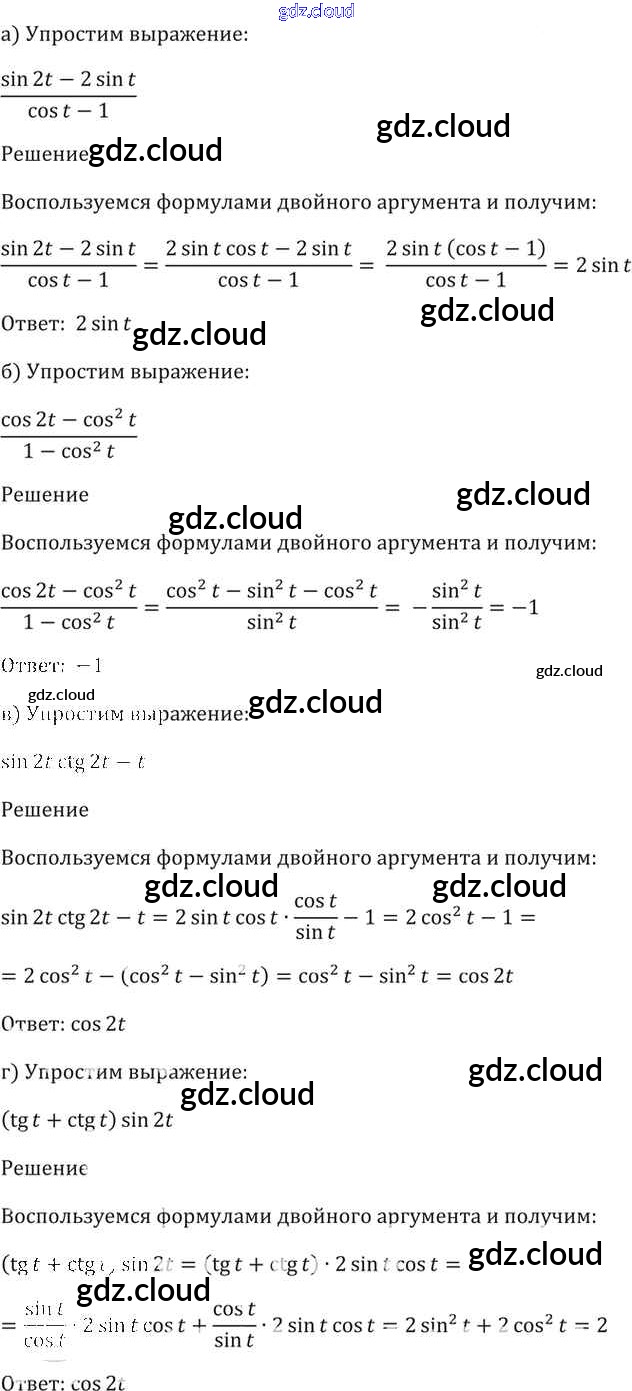 §21. Формулы двойного аргумента Глава 4 по Алгебре 10, 11 класс Задачник Мордкович Базовый уровень Часть 2 Мнемозина