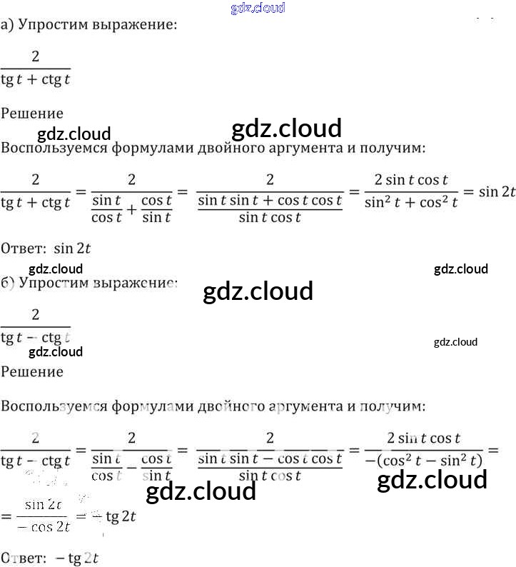 §21. Формулы двойного аргумента Глава 4 по Алгебре 10, 11 класс Задачник Мордкович Базовый уровень Часть 2 Мнемозина