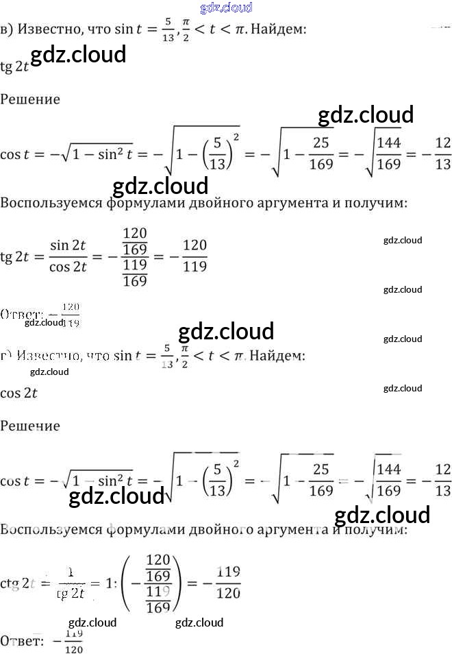 §21. Формулы двойного аргумента Глава 4 по Алгебре 10, 11 класс Задачник Мордкович Базовый уровень Часть 2 Мнемозина