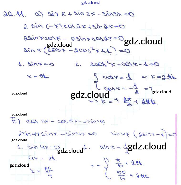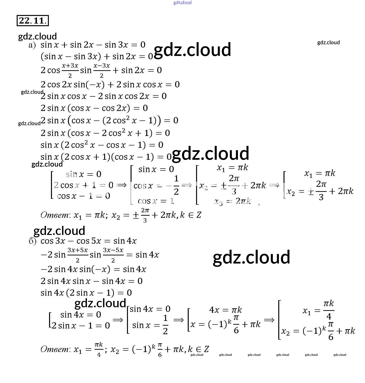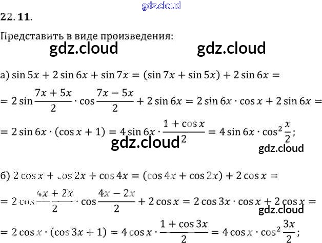 §22. Преобразование суммы тригонометрических функций в произведения Глава 4 по Алгебре 10, 11 класс Задачник Мордкович Базовый уровень Часть 2 Мнемозина