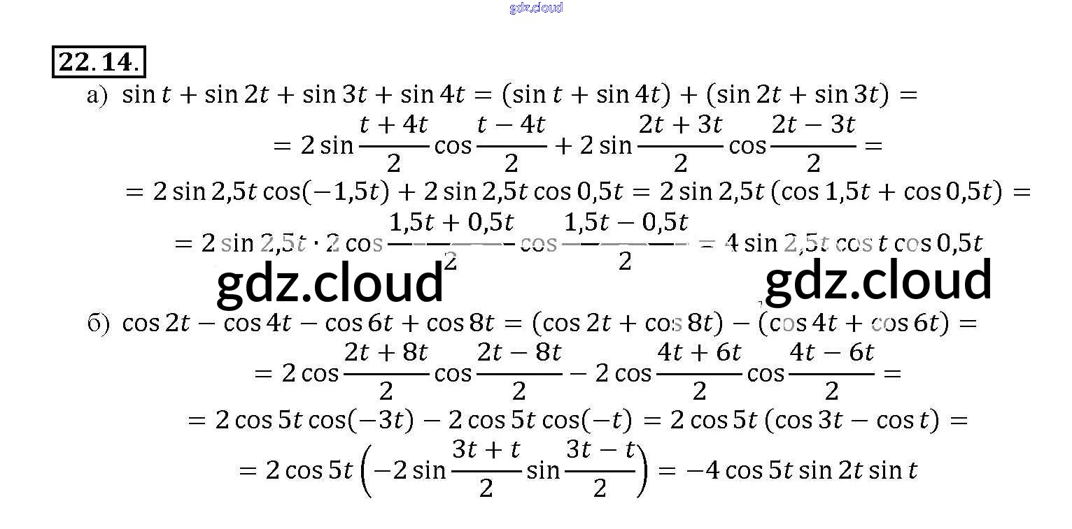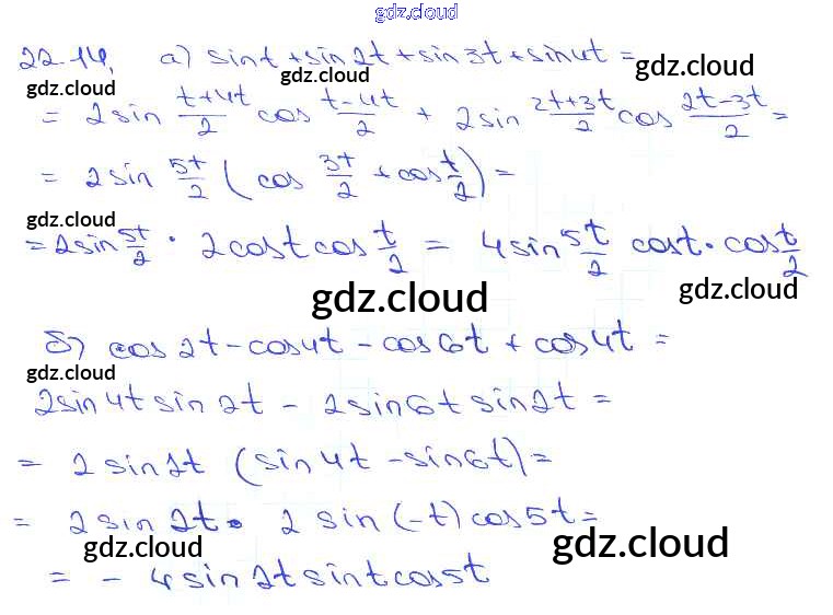 §22. Преобразование суммы тригонометрических функций в произведения Глава 4 по Алгебре 10, 11 класс Задачник Мордкович Базовый уровень Часть 2 Мнемозина