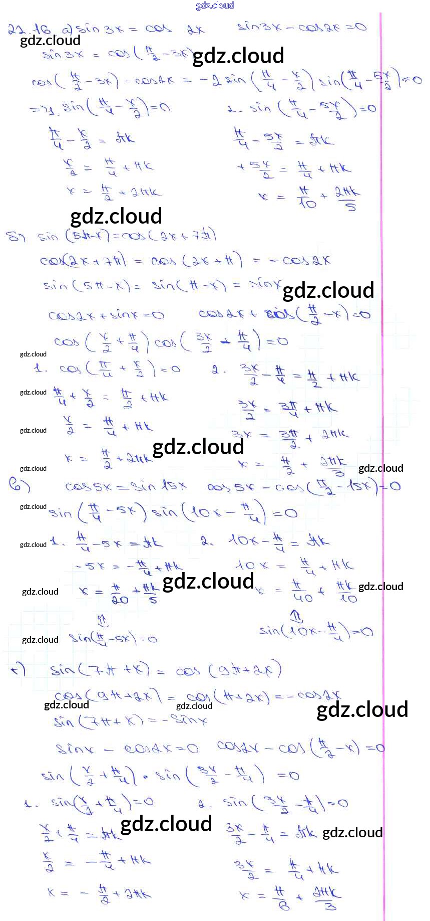 §22. Преобразование суммы тригонометрических функций в произведения Глава 4 по Алгебре 10, 11 класс Задачник Мордкович Базовый уровень Часть 2 Мнемозина