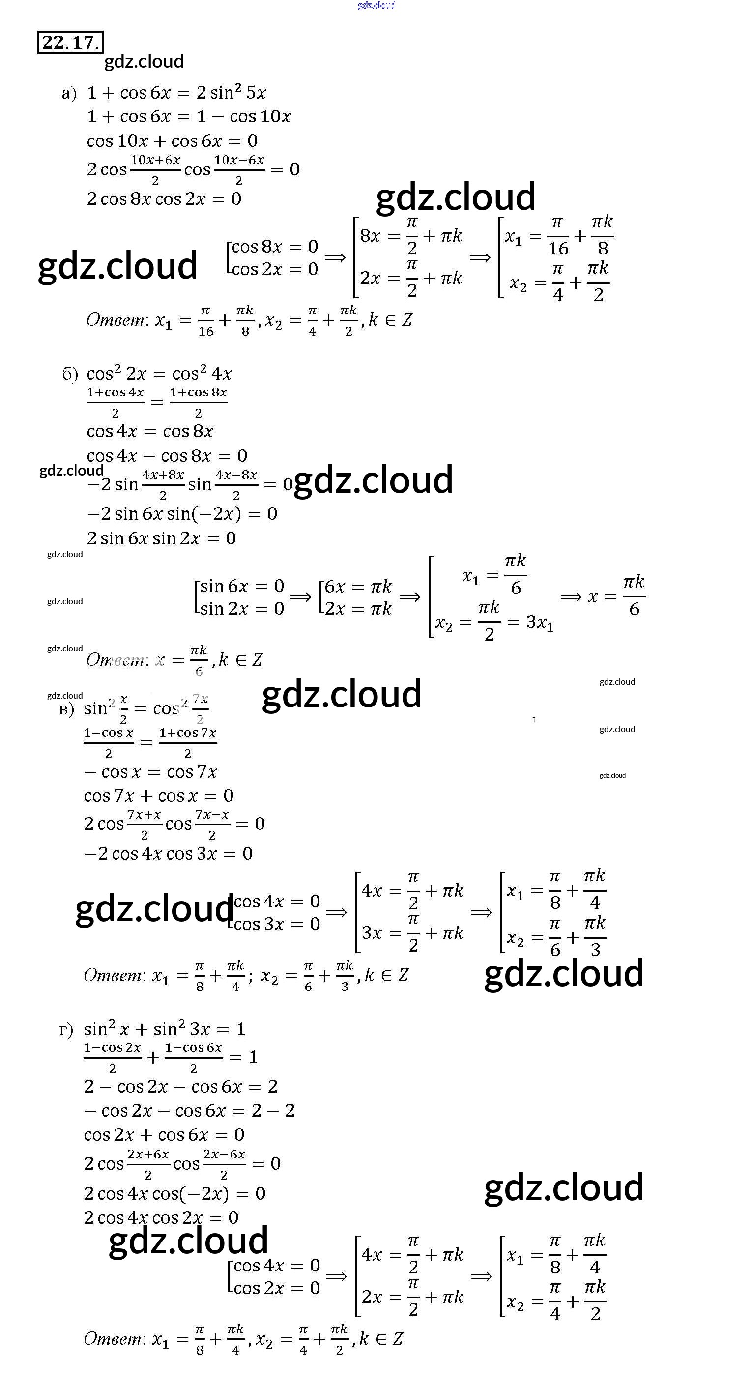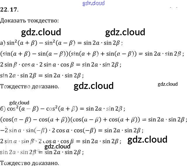 §22. Преобразование суммы тригонометрических функций в произведения Глава 4 по Алгебре 10, 11 класс Задачник Мордкович Базовый уровень Часть 2 Мнемозина