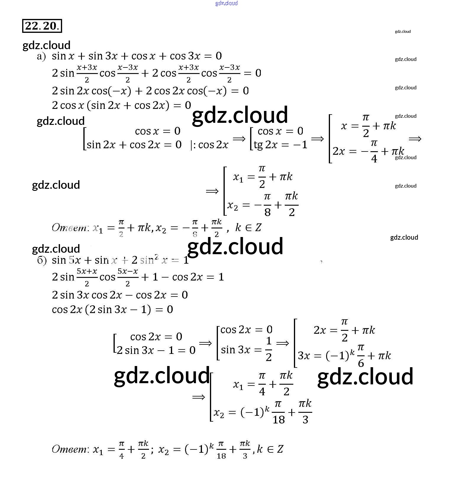 §22. Преобразование суммы тригонометрических функций в произведения Глава 4 по Алгебре 10, 11 класс Задачник Мордкович Базовый уровень Часть 2 Мнемозина
