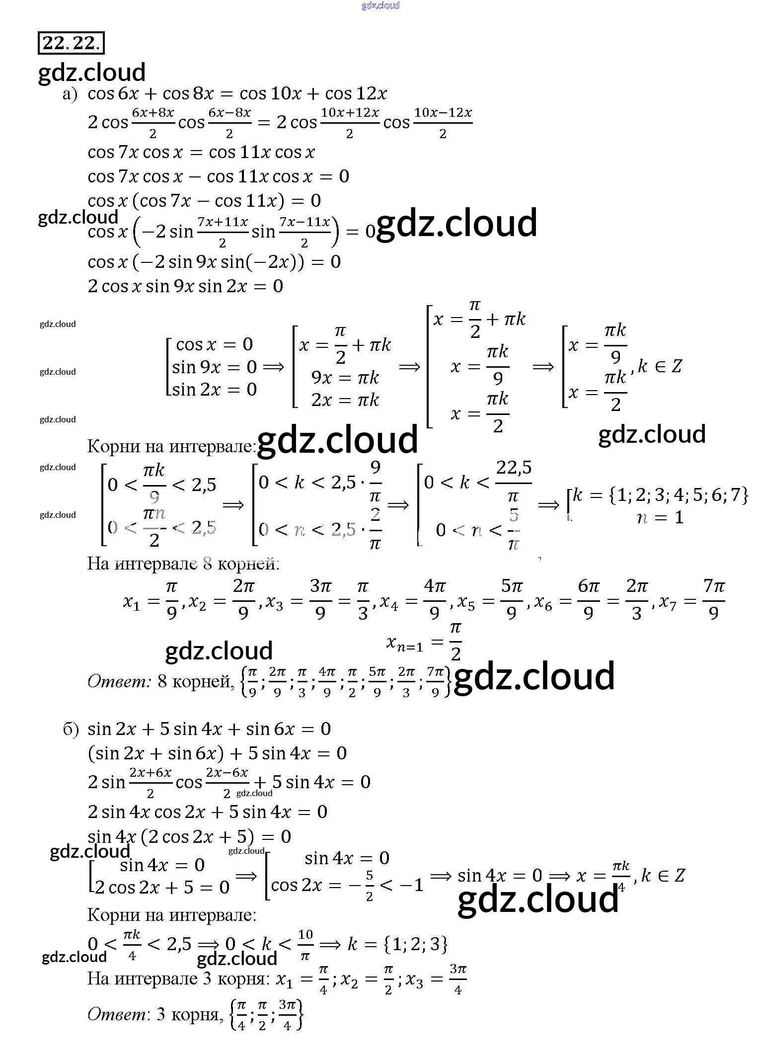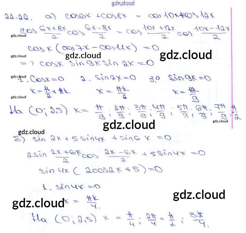 §22. Преобразование суммы тригонометрических функций в произведения Глава 4 по Алгебре 10, 11 класс Задачник Мордкович Базовый уровень Часть 2 Мнемозина