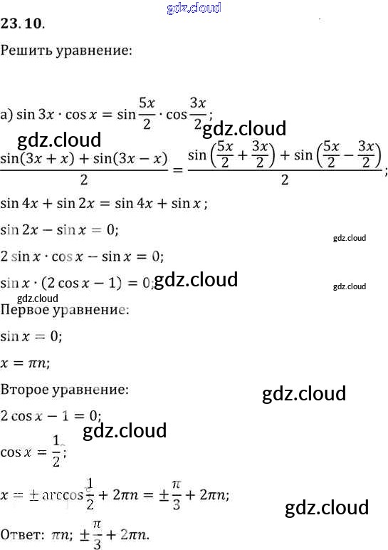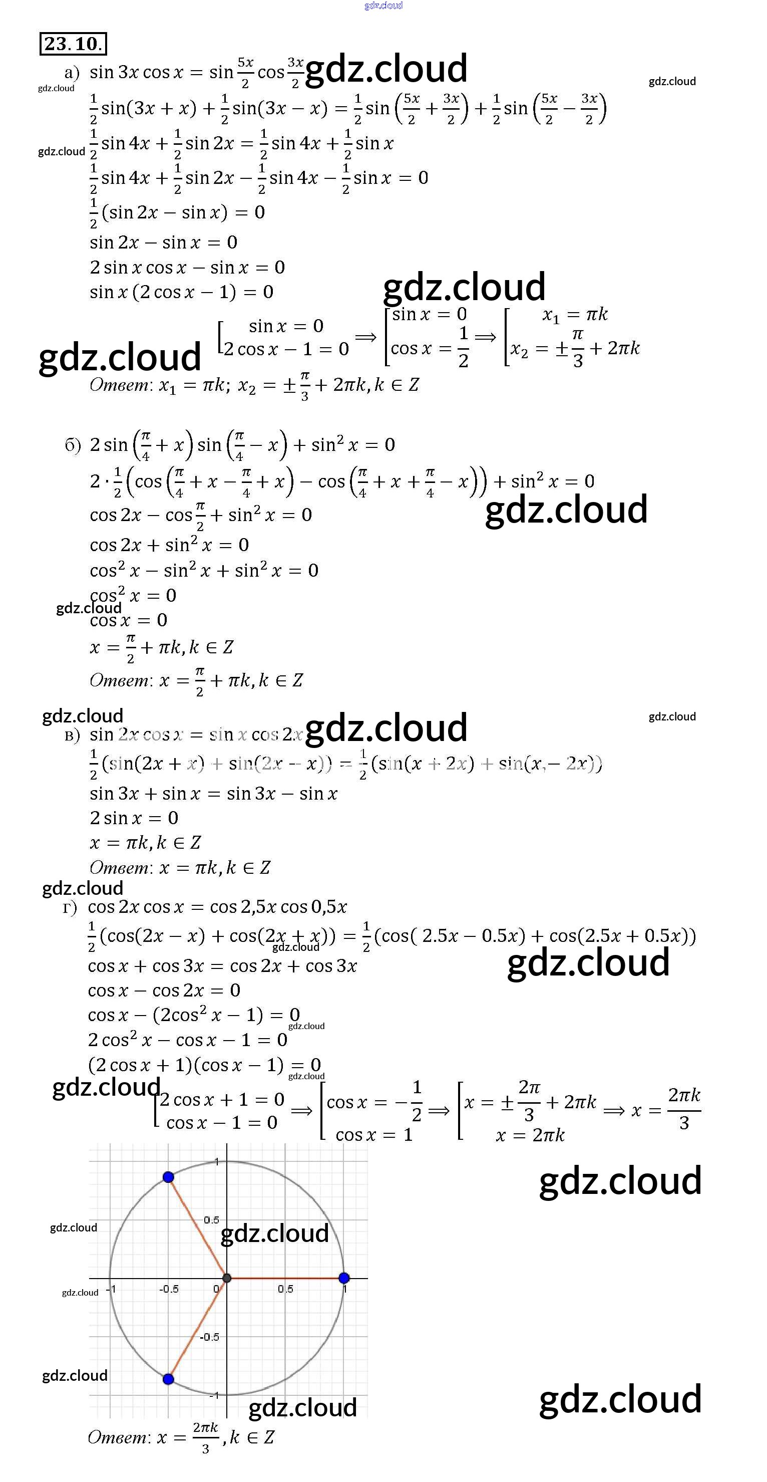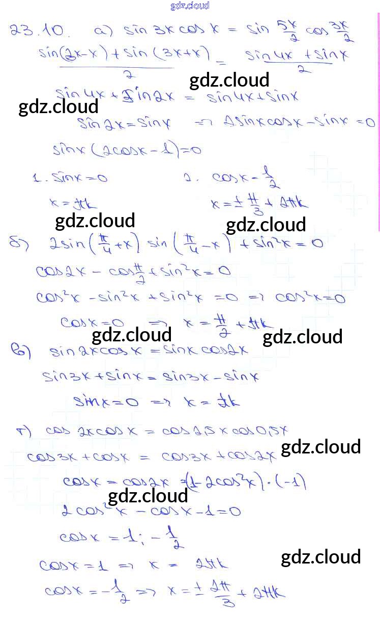 §23. Преобразование произведений тригонометрических функций в суммы Глава 4 по Алгебре 10, 11 класс Задачник Мордкович Базовый уровень Часть 2 Мнемозина
