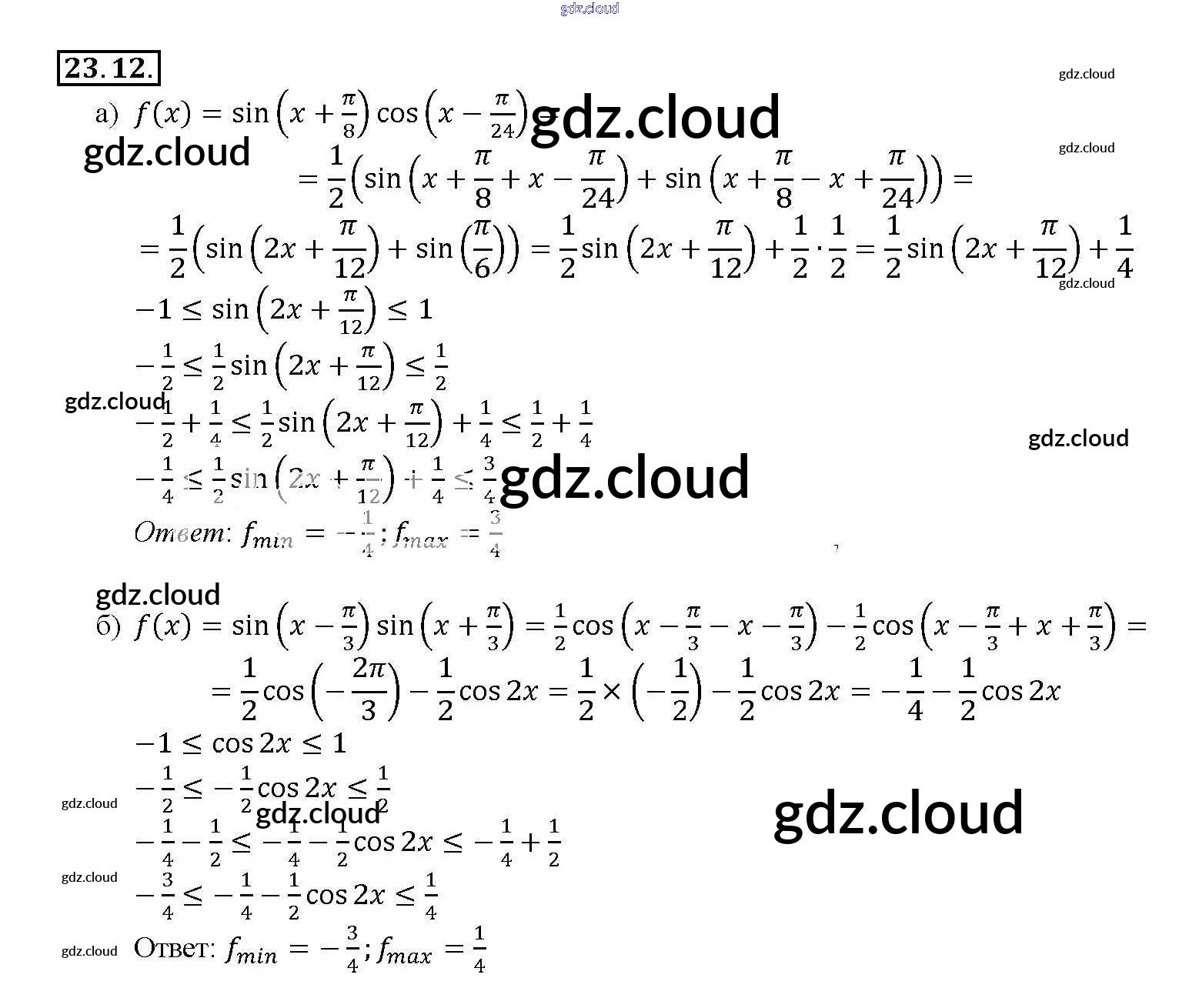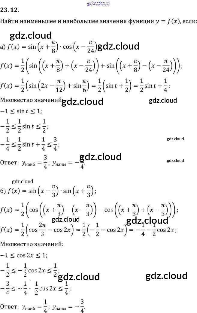 §23. Преобразование произведений тригонометрических функций в суммы Глава 4 по Алгебре 10, 11 класс Задачник Мордкович Базовый уровень Часть 2 Мнемозина