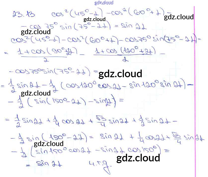 §23. Преобразование произведений тригонометрических функций в суммы Глава 4 по Алгебре 10, 11 класс Задачник Мордкович Базовый уровень Часть 2 Мнемозина