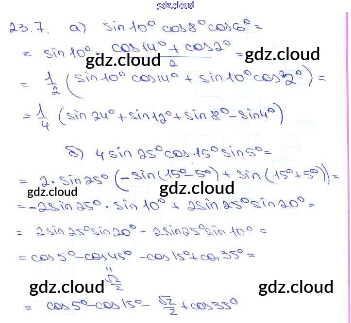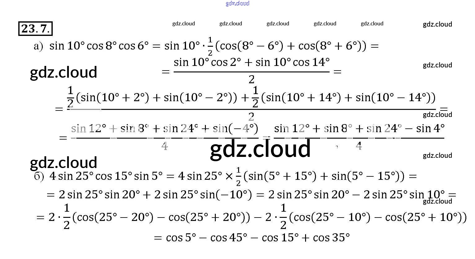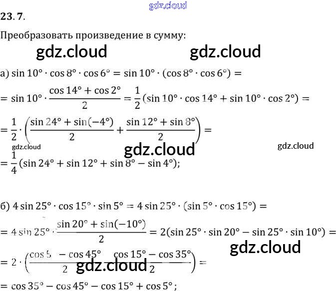 §23. Преобразование произведений тригонометрических функций в суммы Глава 4 по Алгебре 10, 11 класс Задачник Мордкович Базовый уровень Часть 2 Мнемозина