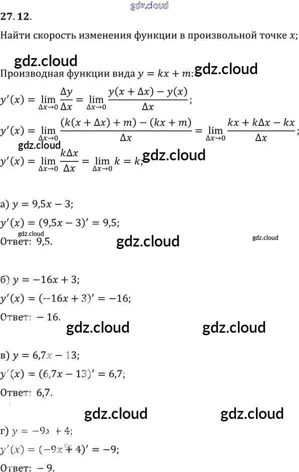 §27. Определение производной Глава 5 по Алгебре 10, 11 класс Задачник Мордкович Базовый уровень Часть 2 Мнемозина