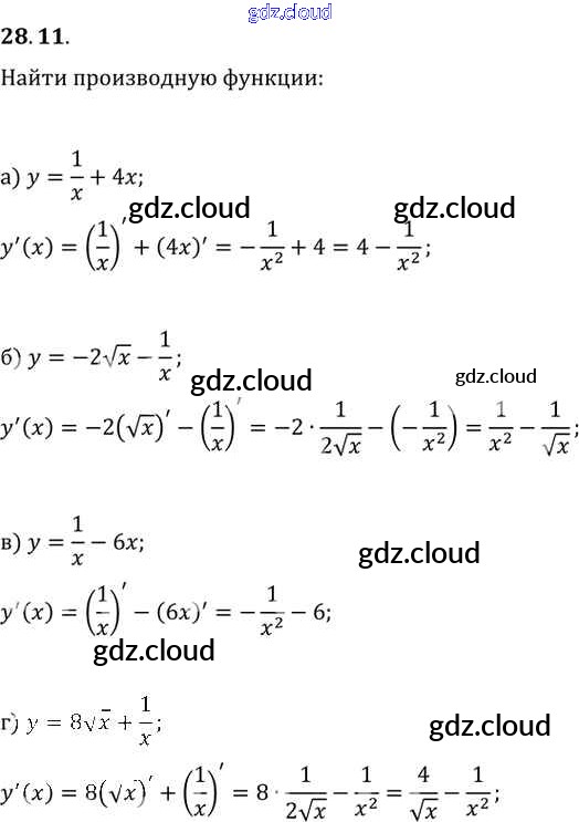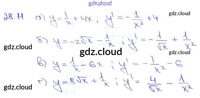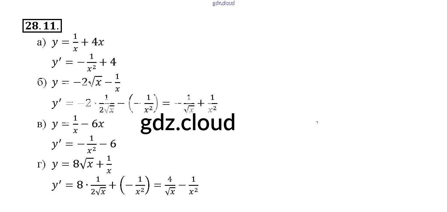 §28. Вычисление производных Глава 5 по Алгебре 10, 11 класс Задачник Мордкович Базовый уровень Часть 2 Мнемозина