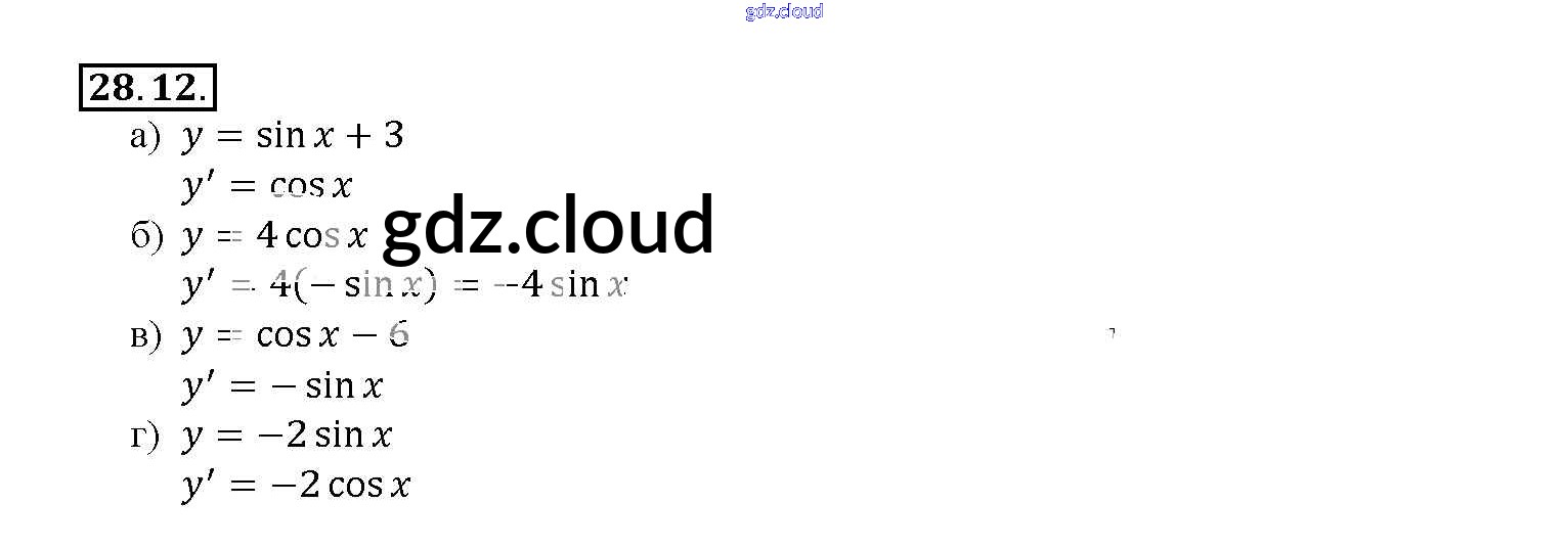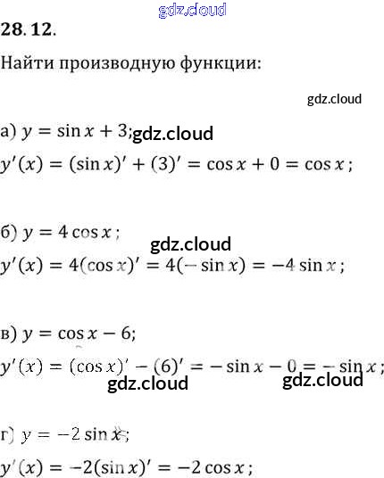 §28. Вычисление производных Глава 5 по Алгебре 10, 11 класс Задачник Мордкович Базовый уровень Часть 2 Мнемозина