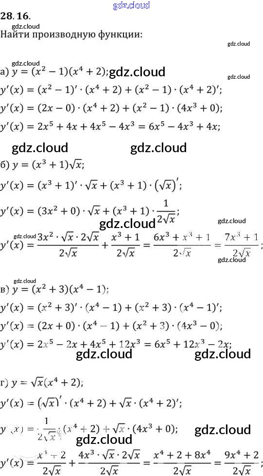 §28. Вычисление производных Глава 5 по Алгебре 10, 11 класс Задачник Мордкович Базовый уровень Часть 2 Мнемозина
