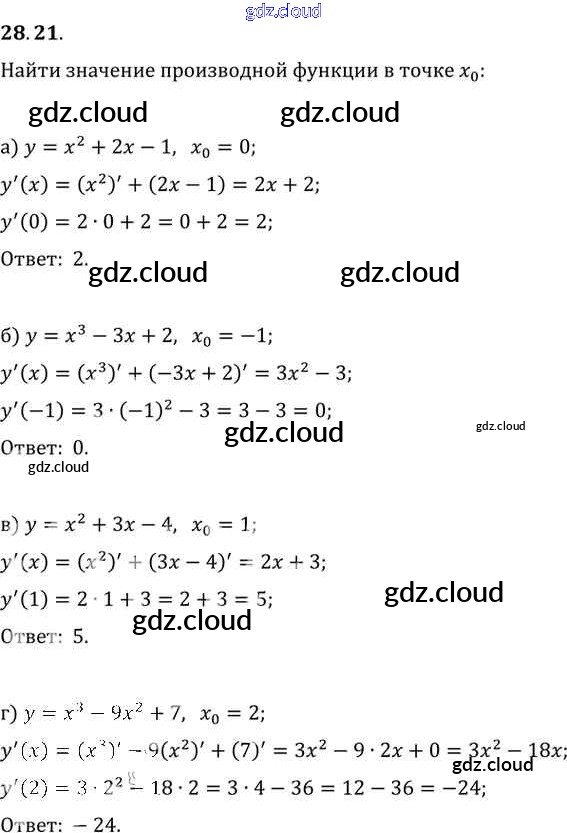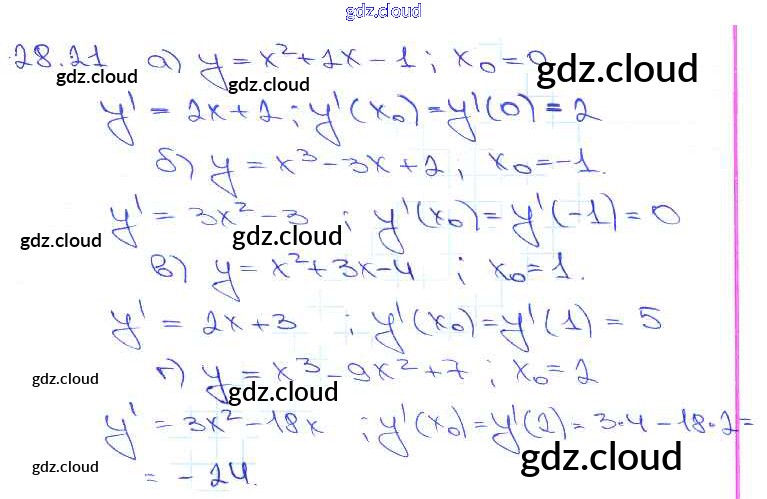§28. Вычисление производных Глава 5 по Алгебре 10, 11 класс Задачник Мордкович Базовый уровень Часть 2 Мнемозина
