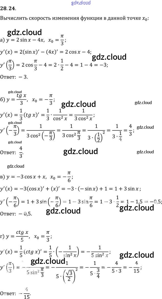 §28. Вычисление производных Глава 5 по Алгебре 10, 11 класс Задачник Мордкович Базовый уровень Часть 2 Мнемозина