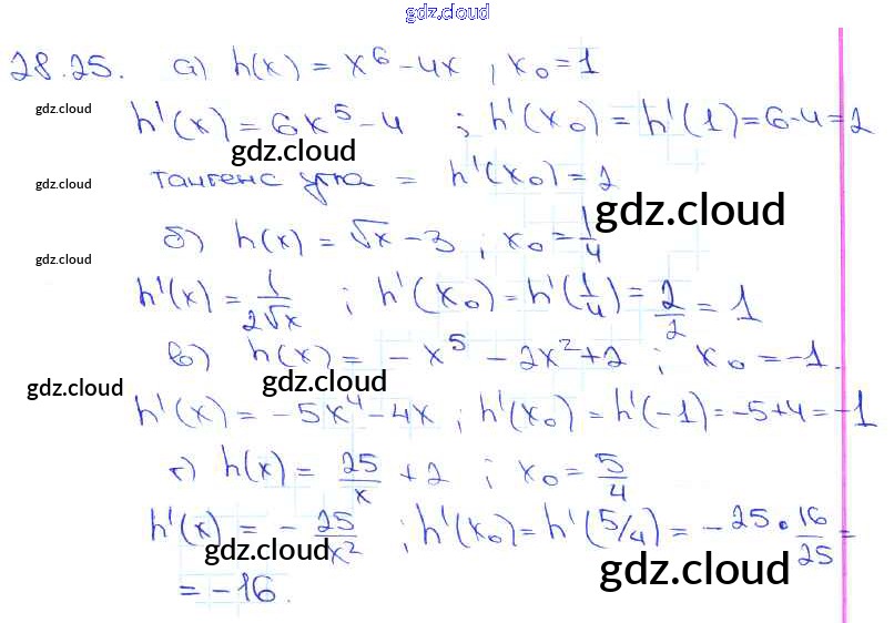 §28. Вычисление производных Глава 5 по Алгебре 10, 11 класс Задачник Мордкович Базовый уровень Часть 2 Мнемозина