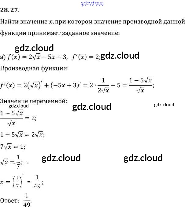 §28. Вычисление производных Глава 5 по Алгебре 10, 11 класс Задачник Мордкович Базовый уровень Часть 2 Мнемозина