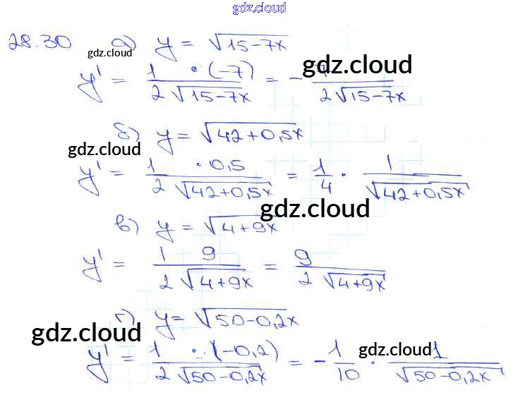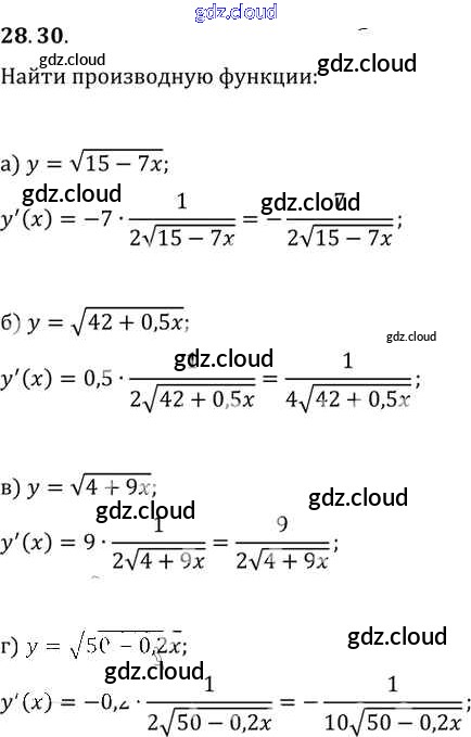 §28. Вычисление производных Глава 5 по Алгебре 10, 11 класс Задачник Мордкович Базовый уровень Часть 2 Мнемозина