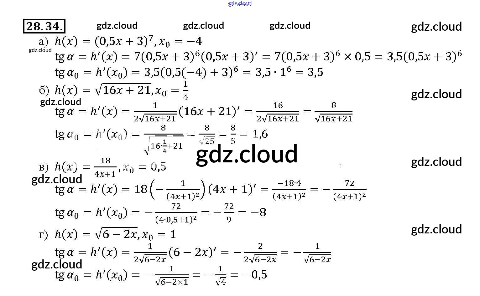 §28. Вычисление производных Глава 5 по Алгебре 10, 11 класс Задачник Мордкович Базовый уровень Часть 2 Мнемозина