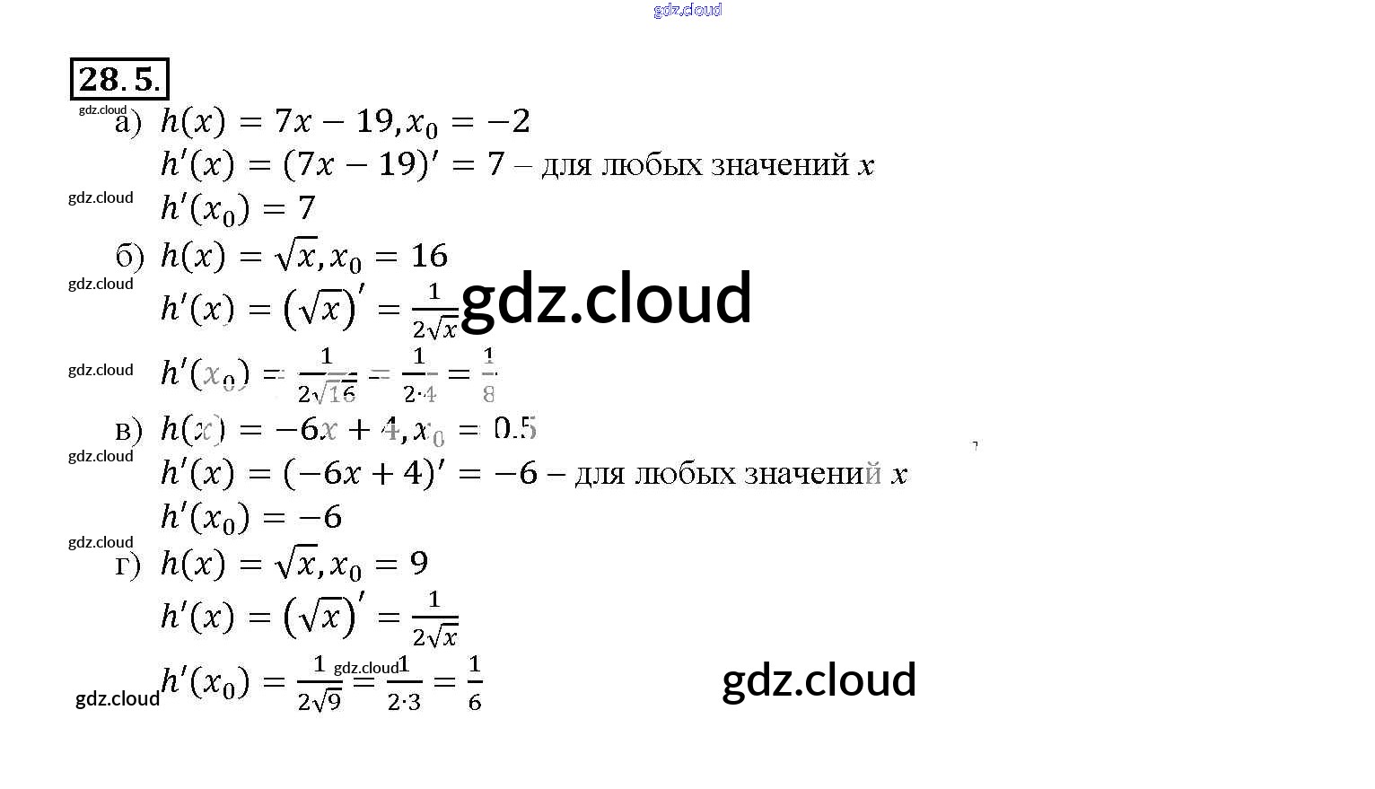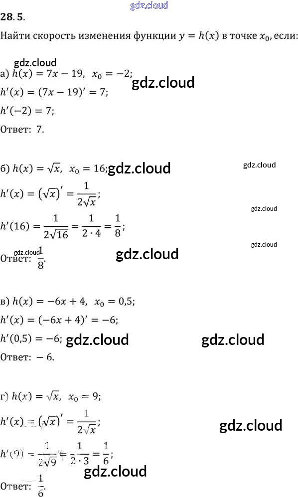 §28. Вычисление производных Глава 5 по Алгебре 10, 11 класс Задачник Мордкович Базовый уровень Часть 2 Мнемозина