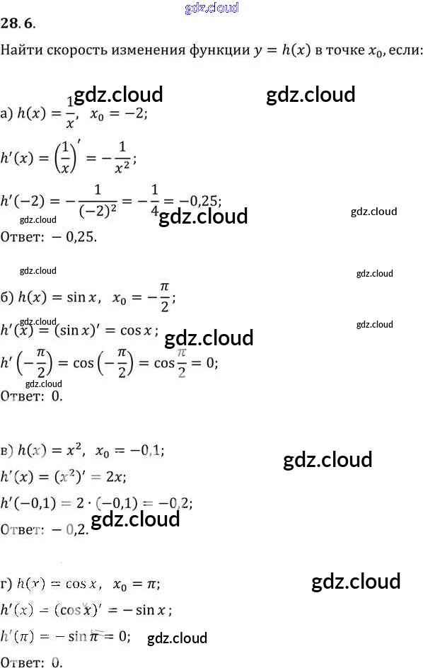 §28. Вычисление производных Глава 5 по Алгебре 10, 11 класс Задачник Мордкович Базовый уровень Часть 2 Мнемозина