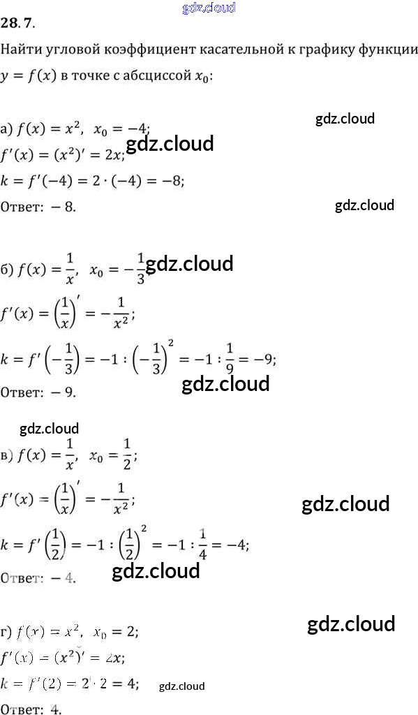 §28. Вычисление производных Глава 5 по Алгебре 10, 11 класс Задачник Мордкович Базовый уровень Часть 2 Мнемозина
